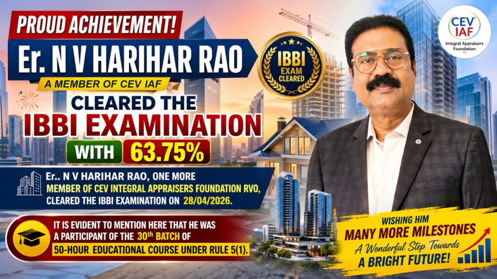 NEW DELHI:- 28/04/2026 (TECHNO REPORTER): Er. N V HARIHAR RAO, ONE MORE MEMBER OF CEV INTEGRAL APPRAISERS FOUNDATION RVO, CLEARED THE IBBI EXAMINATION ON 28/04/2026.